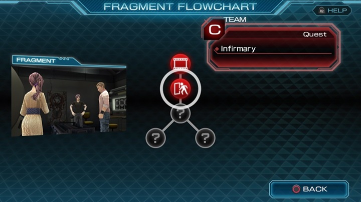 Uma das principais diferenças face aos jogos anteriores prende-se com a divisão dos nove participantes em equipas fixas de três elementos, sem qualquer contacto entre si. Cada capítulo jogável representa períodos de 90 minutos, contendo tipicamente longas secções de diálogo, uma sala para explorar exaustivamente e resolver os respectivos puzzles, e uma decisão difícil a tomar no final. No entanto, a forma como estes capítulos são apresentados ao jogador é bastante distinta do habitual. Em vez de seguirmos uma progressão linear, ou mesmo uma árvore narrativa claramente estruturada como em Virtue’s Last Reward, aqui a história surge fragmentada em múltiplos segmentos dispersos.