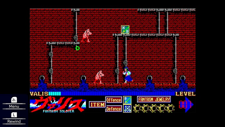 Começando pelo primeiro Valis para o sistema PC-88, aproveito para corrigir uma imprecisão na minha análise ao volume anterior, onde mencionei que a versão MSX seria a original. Isso, aparentemente, não corresponde à verdade, apesar dessa versão ter uma data de lançamento anterior à de PC-88, segundo a Wikipédia no momento da escrita do referido artigo. Supostamente (e de acordo com os próprios criadores do jogo) a versão PC-88 é a original, até porque possui todo o conteúdo inicialmente planeado, enquanto a versão MSX perde uma série de níveis e todas as sequências no estilo anime. Na verdade, esta versão PC-88 herda todas as mecânicas da versão MSX que já abordei anteriormente, com níveis longos, labirínticos, e uma avalanche de inimigos que nos atacam continuamente vindos de todas as direcções. As esferas de energia que estes largam servem para restaurar e expandir a barra de vida de Yuko, sendo que os power-ups de armas que podemos encontrar consomem parte da vida/experiência que vamos amealhando. Tudo isto, aliado a um scrolling pouco fluído, mecânicas de salto bastante obtusas e à ausência de frames de invencibilidade após sofrer dano, torna esta experiência particularmente penosa, ao ponto de mesmo as funcionalidades de save state e rewind introduzidas pela compilação pouco ajudarem.