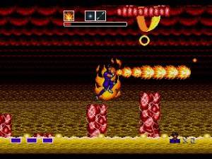 Tanto num caso como no outro podemos apanhar vários power ups que mudam o nosso tipo de disparos, existindo várias possibilidades, desde projécteis mais largos, outros que são disparados em diferentes direcções em simultâneo, outros perfurantes e capazes de atingir mais que um inimigo em simultâneo, entre outros. A diferença é que estes power ups duram apenas alguns segundos, retornando depois ao ataque normal. Nos segmentos de platforming temos mais outra mecânica do Wonderboy clássico. Se virem no canto superior esquerdo temos uma pequena barra de vida que vai diminuindo com cada dano que sofrermos, mas também diminui automaticamente com o tempo. Ao apanhar peças de fruta podemos restabelecer parte desta barra de energia, tal como no primeiro jogo. Nos segmentos onde voamos às costas de um dragão, esta barra só diminui mesmo caso soframos dano.