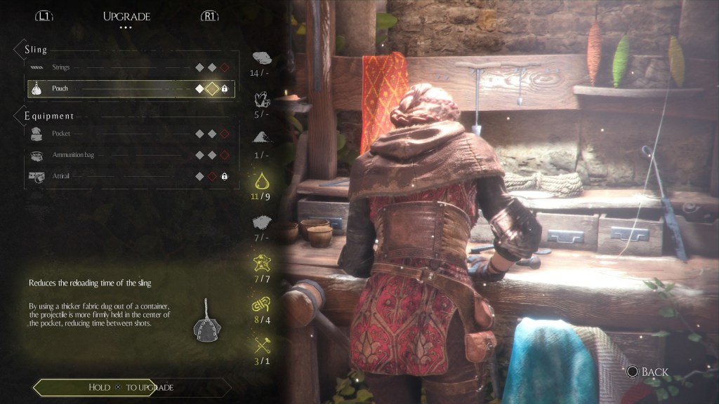 Outro dos focos deste jogo, para além da sua exploração e eventuais puzzles que tenhamos de resolver, está precisamente na alquimia e sistema de crafting. À medida que vamos explorando os cenários à nossa volta, iremos encontrar reagentes e outros materiais que não só nos permitem criar as tais munições especiais que referi acima, mas também fazer alguns upgrades à fisga e ao equipamento de Amelie. Os primeiros tornam a fisga mais precisa, eficiente e silenciosa, já os outros podem aumentar a capacidade de armazenamento de reagentes, materiais ou mesmo simplificar o processo de crafting para upgrades futuros. Portanto, depois de limpar cada zona de inimigos, investi também bastante tempo para explorar todos os seus recantos e encontrar o máximo de materiais possível, bem como alguns coleccionáveis que poderemos também encontrar.