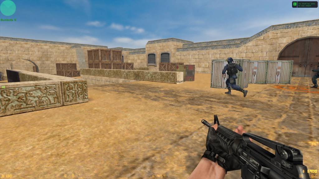 Agora a jogabilidade é simples e assenta sem dúvida na perícia de cada um e no expertise dos diferentes mapas, ao reconhecer os melhores pontos de vantagem. Aqui não há classes e no início de cada round cada jogador tem uma certa quantia de dinheiro para gastar para comprar diferentes armas, munições, explosivos e armaduras. Apenas podemos carregar duas armas de cada vez, uma primária e outra secundária, mas vamos tendo um grande arsenal de diferentes armas para escolher, tanto metralhadoras, pistolas, shotguns, sniper rifles e por aí fora. Dependendo da nossa performance ao longo do jogo, vamos tendo mais ou menos dinheiro disponível para os rounds seguintes, pelo que convém comprar material de forma mais sensata. De resto, tal como referi no primeiro parágrafo, a versão que mais joguei foi a 1.5. A que aqui vem é a 1.6 que eu e os meus amigos nunca gostamos muito, pois introduziram a possibilidade dos polícias poderem usar um daqueles escudos gigantes e sempre sentimos que isso tenha desiquilibrado um pouco as balanças.