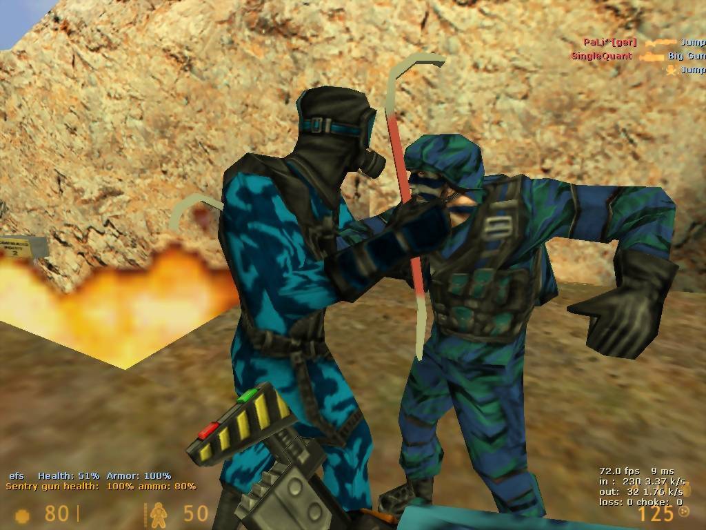 Deixando os Counter Strike para o fim, vamos começar com os mais desconhecidos desta compilação. Deathmatch Classic, tal como practicamente todos os outros títulos presentes nesta compilação, começou como sendo um mod de Half-Life e é na verdade uma espécie de homenagem ao Quake clássico, pois os seus mapas, armas e jogabilidade frenética estão todos aqui presentes de certa forma. Mas é também um jogo muito simples, onde o único modo de jogo é precisamente o deathmatch. Team Fortress Classic é o original que nos trouxe o Team Fortress 2, ainda bastante popular hoje em dia. Já neste primeiro jogo tínhamos o sistema de 9 classes, cada qual com diferentes armas e habilidades no geral, o que para a altura me pareceu uma inovação bastante interessante. Particularmente os Spies, capazes de se mascararem de soldados inimigos! É um jogo interessante do ponto de vista histórico, mas envelheceu mal e recomendo vivamente a sua sequela, não só pela jogabilidade e gráficos mais refinados, mas também pela maior variedade de modos de jogo.