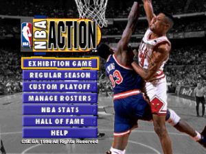 NBA Action é um jogo de basquetebol, devidamente licenciado pelas equipas da NBA na temporada 95-96, e que possui diversos modos de jogo, a começar pelo típico Exhibition, onde poderemos jogar uma partida amigável. Mas, sendo este um simulador, o grande foco do jogo está no seu modo temporada, onde teremos de jogar uma temporada inteira, tendo em conta eventuais lesões e poderemos também contratar/vender jogadores, bem como criar jogadores novos de raiz para a temporada em questão. O outro modo de jogo é o custom playoff, para quem não quiser jogar uma temporada completa. De resto teremos outras opções para customizar ainda mais as equipas existentes no jogo, algo que eu não cheguei a explorar, bem como observar todos os dados estatísicos oficiais da temporada anterior de 1994-1995.