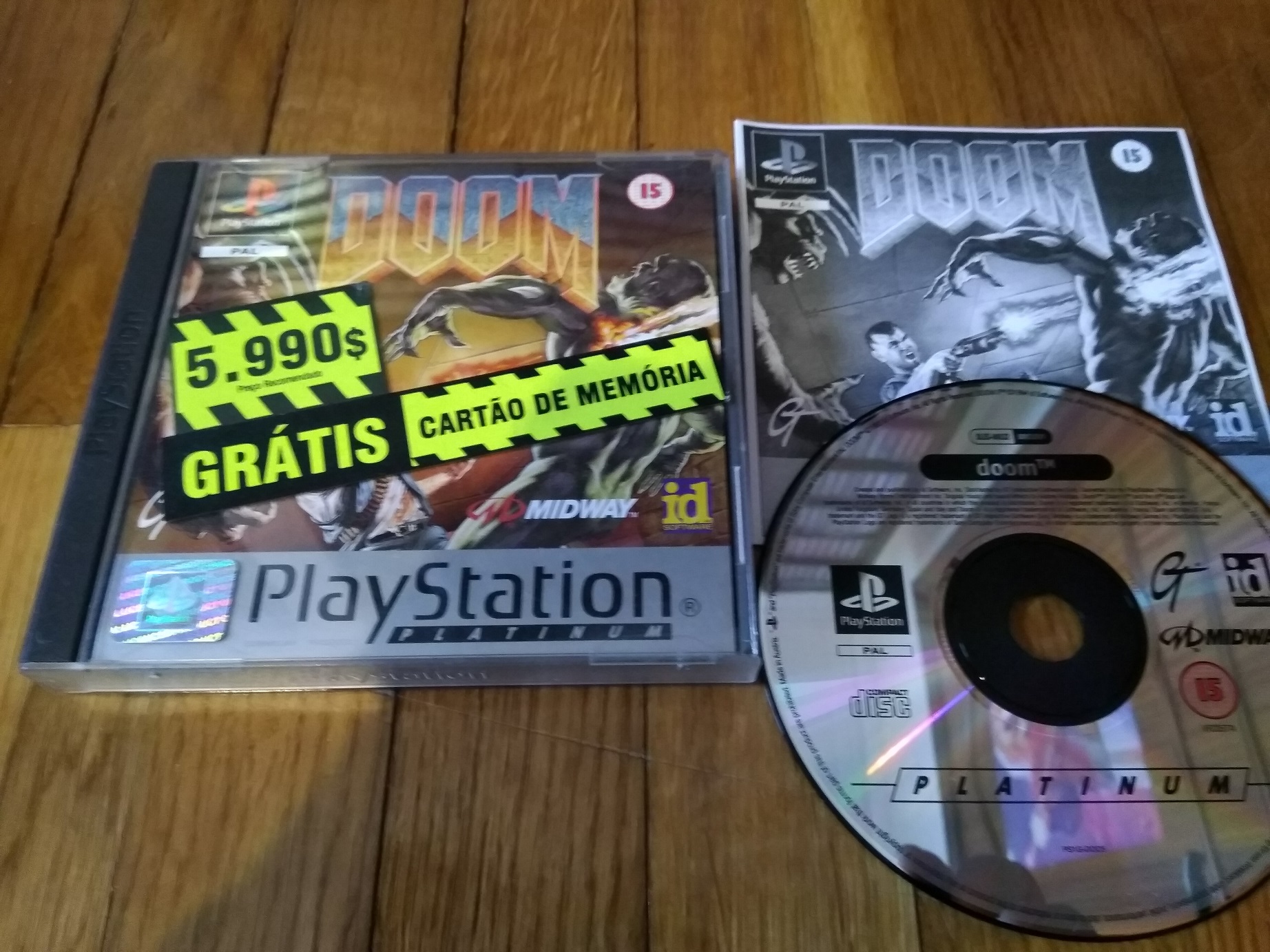 Continuando pelas rapidinhas, hoje trago-vos cá um breve artigo sobre a conversão do DOOM para a primeira Playstation. Ah, o Doom, o jogo que oficialmente ou não já foi convertido para a maioria das plataformas possíveis e imaginárias. Um dia que façam uma torradeira com ecrã e teclado, garantidamente alguém vai meter lá o Doom a bombar! Este meu exemplar foi comprado algures durante o mês passado numa das minhas idas às feiras de velharias aqui da zona. Custou-me 2€, embora infelizmente seja a versão Platinum.