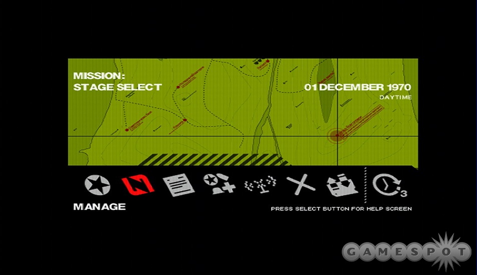 Ecrã que aparece entre missões, onde podemos gerir o nosso “batalhão” e escolher quais os locais que queremos infiltrar