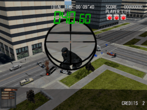 Tal como referi na versão Playstation 2, este é um shooter arcade, com a particularidade de a nossa arma ser uma sniper rifle e, como a maioria dos inimigos estão distantes, teremos de usar a mira telescópica com muita regularidade. E sendo um jogo arcade, é um jogo por tempo cujo relógio vai sendo extendido à medida que vamos derrotando inimigos. Ocasionalmente teremos caminhos alternativos para explorar e no final do nível teremos sempre um boss para enfrentar. Um detalhe interessante é que a maioria dos bosses têm uma barra de vida, mas têm também um ponto fraco (geralmente a cabeça) que se for atingido, são derrotados imediatamente. De resto, os modos de jogo são os mesmos presentes na versão da PS2.