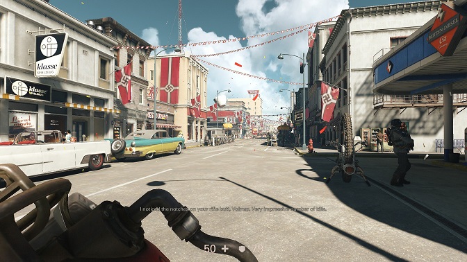 Já no que diz respeito aos audiovisuais este é mais um jogo muito bem competente. Os inimigos vêm em todos os tamanhos e feitios e a cidade de Paris está bem representada, misturando os seus edifícios típicos com toda aquela arquitectura opressora da máquina de guerra nazi. Aliás, mundo que aqui exploramos não é um mundo inteiramente aberto, mas sim um conjunto de diferentes áreas acessíveis através de túneis de metro que estão interligados entre si. Dá mesmo a ideia de ser uma visão próxima daquilo que a Raven pretenderia fazer com o Wolfenstein de 2009 e falharam miseravelmente. De resto, e sendo este um jogo dos anos 80, até a sua banda sonora captura perfeitamente muita da música mais synth pop/rock que se fazia na época. No entanto tal como referi acima, acho que a narrativa deste jogo ficou muito aquém das expectativas e a personalidade das irmãs Jess e Soph são mesmo as de adolescentes histéricas que muito me irritou. Faltaram mesmo aquelas cutscenes mais tensas ou até os momentos mais bizarros dos outros jogos, o que de certa forma até se entende dada a natureza mais open world deste jogo.