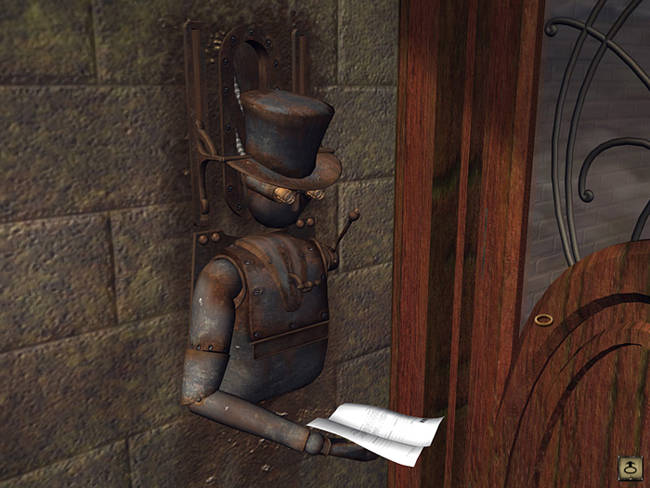 A jogabilidade é simples, sendo apenas necessário o rato para jogar. Botão esquerdo do rato para escolher o sítio onde nos queremos deslocar, ou interagir com pessoas e objectos. O botão direito do rato chama o inventário, ou acelera os diálogos. E no inventário temos os vários items que podemos encontrar ao longo do jogo, na sua esmagadora maioria necessários para progredir, sejam chaves ou outras ferramentas necessárias para abrir novas portas, ou outros objectos que depois acabarão por ser requesitados em alguns puzzles ou mesmo por personagens. Para além do mais temos também uma lista de documentos, todos eles “digitalizados” com uma excelente qualidade, que também podemos ler sempre que o desejarmos. Ainda temos um telemóvel dos antigos que podemos utilizar para… fazer chamadas. Lembram-se daqueles telemóveis pré-Nokia 3210 que apenas tinham caracteres LCD no display e pouco mais? Pronto, Syberia é desse tempo. De resto devo dizer que muitos dos puzzles são bastante straightforward, bastando apenas de alguns objectos como chaves para abrir portas e afins, mas há outros que são mais complicados e mesmo falando com os NPCs para obter pistas não vamos muito mais longe.