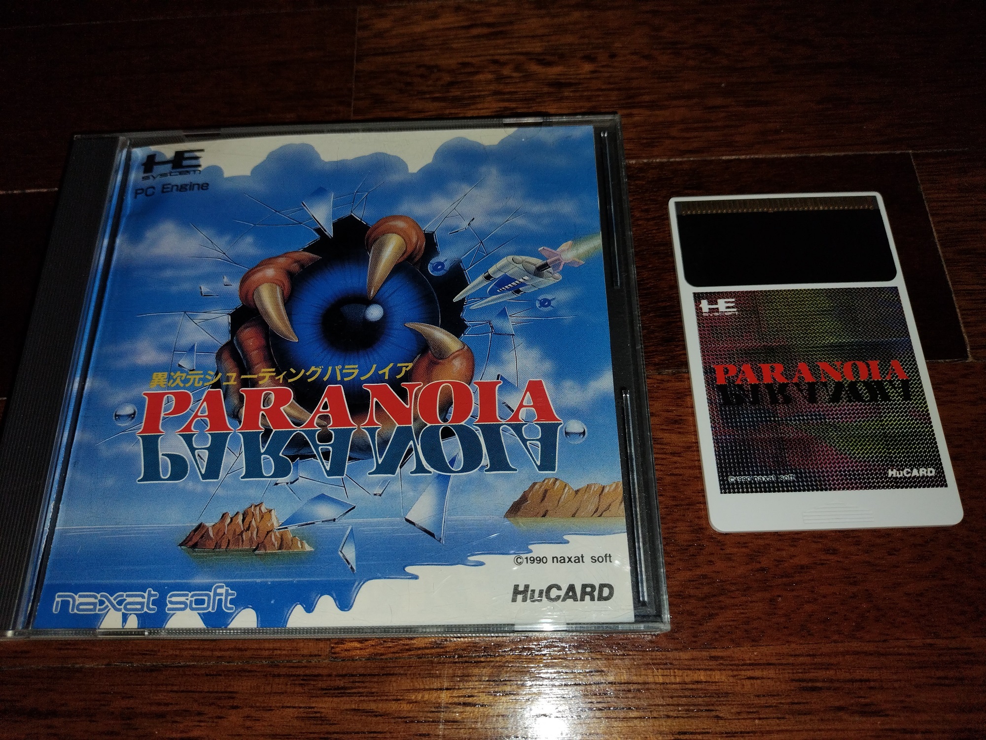 Lançado nos Estados Unidos para a Turbografx-16 como Psychosis, este Paranoia é um dos muitos shmups da jogoteca do ecossistema PC Engine. Desenvolvido pela Naxat Soft, é também um jogo algo bizarro na sua apresentação, como irei descrever mais à frente. O meu exemplar foi comprado a um particular algures em Agosto num lote, tendo este me custado algo em volta dos 20€.