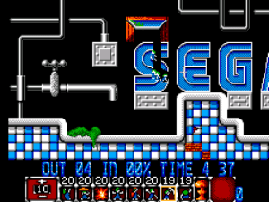 De resto temos aqui dezenas e dezenas de níveis, espalhados ao longo de diferentes níveis de dificuldade. Estes estão representados de uma forma mais simplificada que os originais, até porque temos um número máximo de 20 lemmings em simultâneo no ecrã. De resto, a nível gráfico em si, esta versão não fica muito atrás das restantes, pois já a versão original possui gráficos simples. Esta versão Master System possui é uns quantos níveis novos, que não existem noutras versões, sendo muitos deles dedicados à própria Sega, com o azul e branco do seu logotipo a ser predominante. Outra das coisas que me deixou agradavelmente surpreendido por esta versão é a qualidade das músicas. Estas, pelo menos a maioria, reconheci facilmente de outras versões do Lemmings e no geral, para além de serem músicas bastante agradáveis (sendo que, tal como no original, algumas são adaptações de músicas de compositores clássicos), soam mesmo bem! O que não é normal visto os jogos na Master System e Game Gear terem tipicamente um som mais fraco.