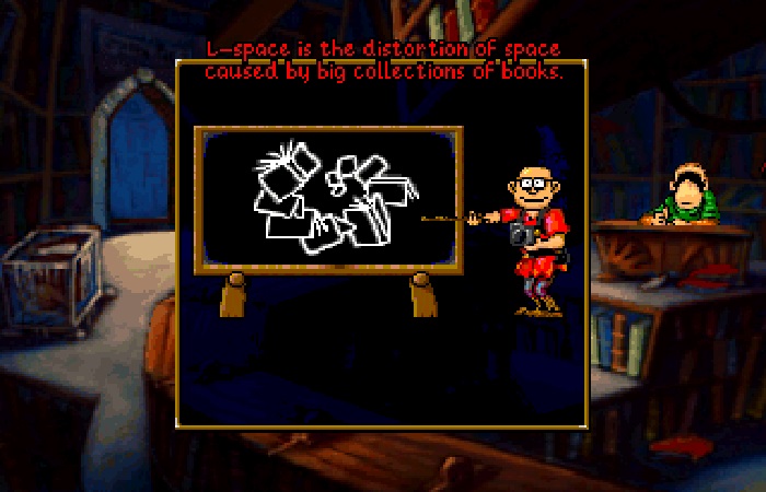 Portanto este Discworld é para mim um jogo absolutamente recomendado, por todo o bom humor e atenção ao detalhe que possui. É no entanto um jogo bastante complexo no seu progresso, pelo que não se inibam se tiverem de usar um guia, pois tal como referi acima, existem inúmeros locais para explorar, cujos até vão tendo pessoas e/ou objectos diferentes para interagir mediante a altura em que os visitamos. E com as dezenas de objectos que vamos acabar por carregar, descobrir as soluções sozinho irá dar um trabalhão gigante de exploração e tentativa/erro. Pessoalmente até fiquei interessado em ler os livros!