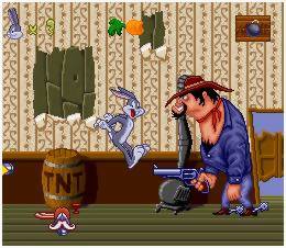 Ora como podem adivinhar, neste jogo protagonizamos o Bugs Bunny, conhecida personagem do universo da Warner Bros. Não estou muito certo da história, mas essencialemente este é um jogo de plataformas onde teremos de ultrapassar uma série de obstáculos e toneladas de inimigos até encontrarmos a saída do nível, ou o seu boss. Os controlos são relativamente simples, com cada botão facial do comando da SNES a possuir funções distintas, como saltar, pontapear, atirar tartes ou usar itens, que podem ser seleccionados recorrendo aos botões de cabeceira.