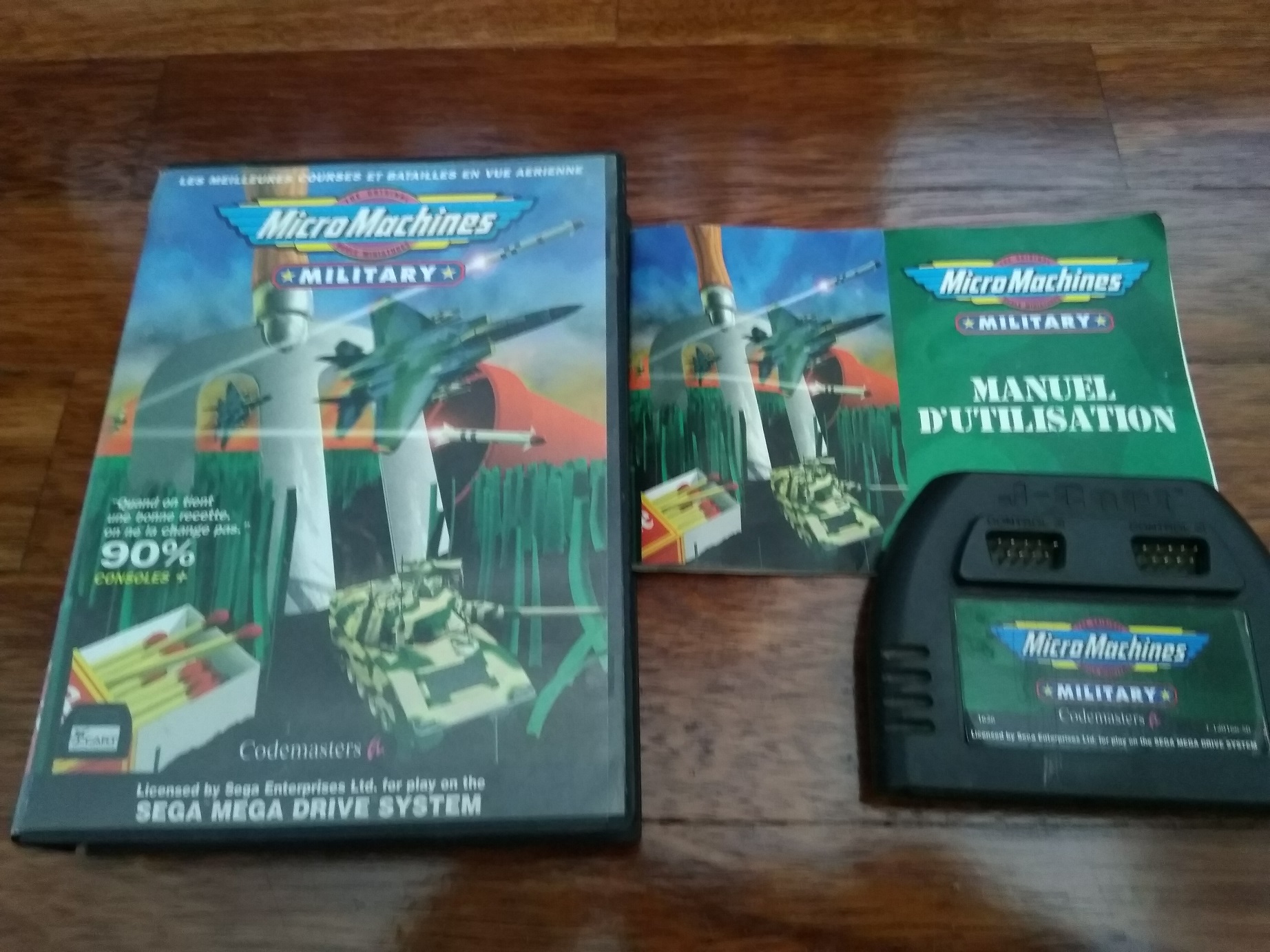Continuando pela Mega Drive e pelas rapidinhas, ficamos agora com o último videojogo da série Micro Machines a ser desenvolvido com base nos sistemas 16 bit. Sendo um lançamento exclusivo europeu, este Micro Machines Military, tal como o nome indica, incide principalmente em corridas com veículos militares. O meu exemplar foi comprado algures em Abril numa ida a Paris em trabalho, onde lá consegui visitar as famosas lojas de Boulevard Voltaire. Custou-me 15€.