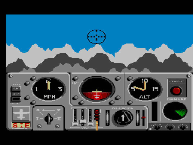 Até aqui tudo bem, as opções existentes até fazem todo o sentido num simulador (e sim, houveram aviões da época com sistema de radar e mísseis rudimentares), mas o problema é mesmo os controlos e como navegamos nesses ecrãs. Ora para mudar de ecrã precisamos de pressionar o botão 2 em conjunto com uma direcção do d-pad, e para além disso, para activar opções como abrir a escotilha, seleccionar armas ou reservas de combustível ou interagir com os parâmetros do motor assim como o seu sistema de extintor de emergência também nos obriga a usar combinações de botões que não são nada intuitivas. Num sistema como o Commodore 64 que possui um teclado próprio presumo que não haja grande problema pois tudo se poderia resumir a atalhos por teclas. Numa consola com apenas 2 botões faciais seria bem mais intuitivo usar um sistema de menus para navegar pelos diferentes ecrãs e opções. E isso não é tudo: controlar o avião é uma chatice de todo o tamanho, pois este parece ter a flexibilidade e destreza de uma baleia.