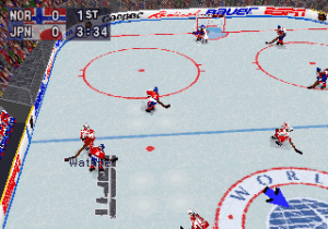 Agora a nível de performance, bom confesso que nunca joguei a versão original, mas tanto o Commodore Amiga 500 como o Atari ST são sistemas bem mais poderosos que a Master System pelo que acredito que esta conversão tenha sofrido um pouco. Isto porque a movimentação dos jogadores é um bocado clunky, estava à espera que fosse mais rápida. A nível gráfico é também um jogo muito simples, onde o seu ecrã título é sem dúvida o ponto mais atractivo. As arenas e equipas são muito idênticas entre si, há pouca variedade nos visuais e a música, bom essa apenas existe no ecrã título, tudo o resto são os sons do jogo e que sinceramente nem são nada de especial.
